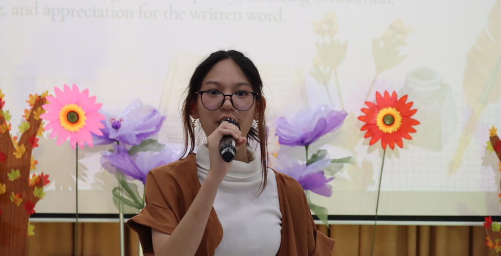 The morning began with a warm welcome from the English Department, followed by a series of performances that brought the audience to both laughter and reflection. Some students chose to recite their favorite classic poems, while others bravely stepped up to the mic to share their own original work—many for the very first time.